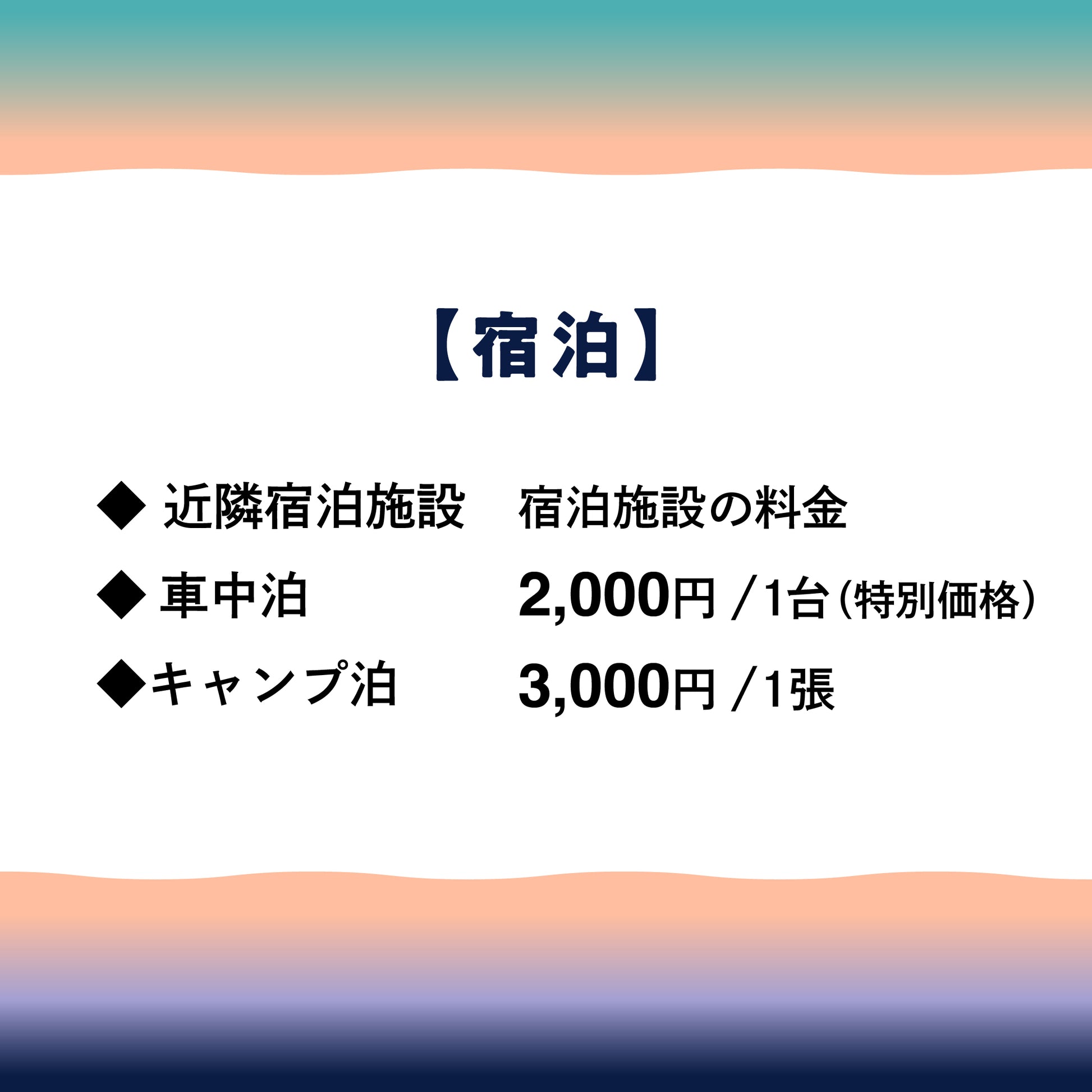 ※キャンプ泊・車中泊をご希望の方は一緒にご選択ください。